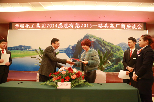 12月19日至23日,我公司隆重举办了“2014感恩有您 ,2015一路共赢”厂商联谊会,来自全国各地的680余名优质经销商欢聚在华强化工,共商合作大计,共谋发展大业。此次会议得到了与会客户的高度赞誉,我公司不但得到客户的进一步的认可,而且进一步提升了华强品牌的知名度,达到了预期效果,会议取得了圆满成功。