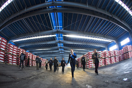 董事长余华强、副总经理徐化林陪同客商参观金阳石生产线