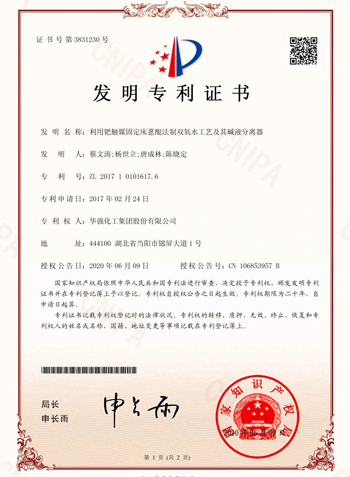 日前,公司申报的“利用钯触媒固定床蒽醌法制双氧水工艺及其碱液分离器”专利技术顺利通过国家知识产权局审核,获得国家发明专利授权。