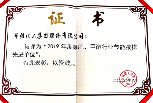 会上,电玩城app大厅股份有限公司被授予中国“2019年度氮肥、甲醇行业节能减排先进单位”称号,公司总经理徐化林、环保部部长夏雪峰分别荣获“2019年度氮肥、甲醇行业节能减排先进个人”荣誉称号,这是对公司一年来在绿色循环发展方面所取得成绩的充分肯定。