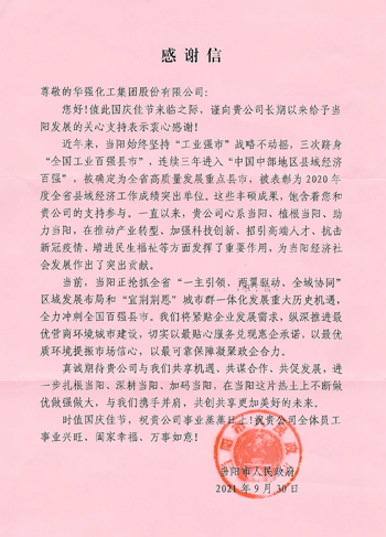 感谢信中说,近年来,当阳始终坚持“工业强市”战略不动摇,三次跻身“全国工业百强县市”,连续三年进入“中国中部地区县域经济百强”,被确定为全省高质量发展重点县市,被表彰为2020年度全省县域经济工作成绩突出单位。这些丰硕成果,饱含着电玩城app大厅的支持参与。