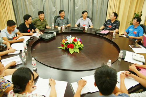 董事长、总经理、党委书记余华强同志参加生产车间一团讨论